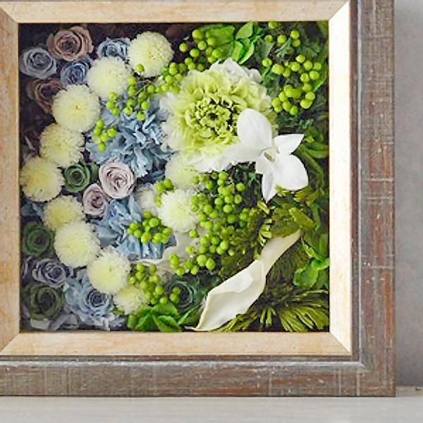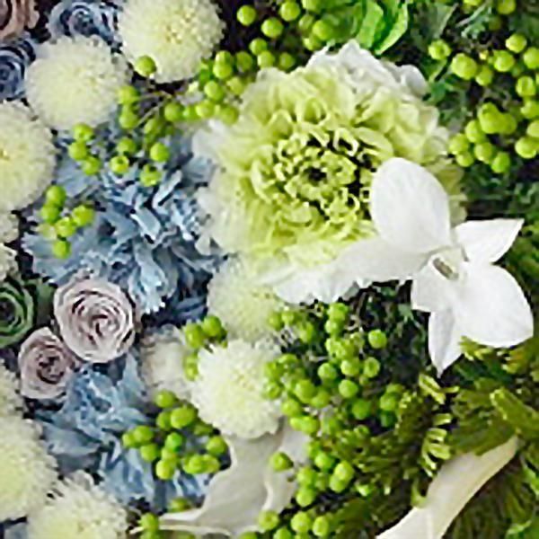 ■花材:ダリア・カラー・デンファレ・小菊・ミニバラ4種・カーネーション2種・アジサイ2種・岩ヒバ・ペッパーベリー他(すべてプリザーブドフラワー)