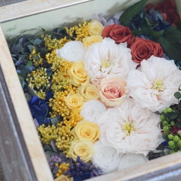 すべてプリザーブドフラワーで仕立てているため、みずみずしい美しさが長く続きます。