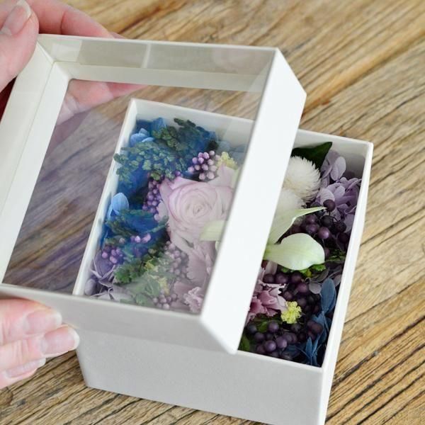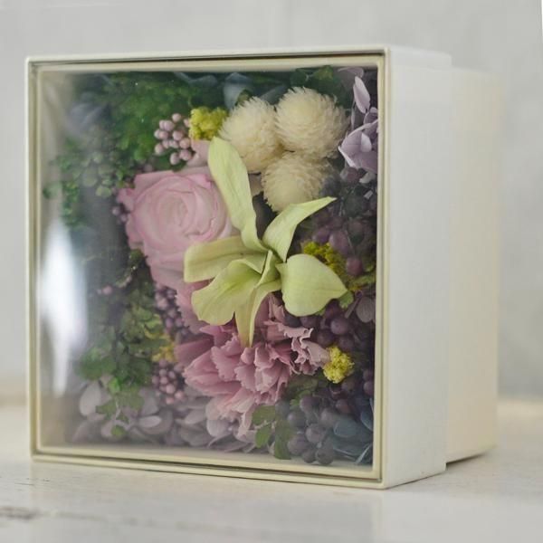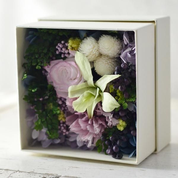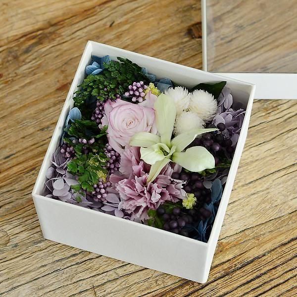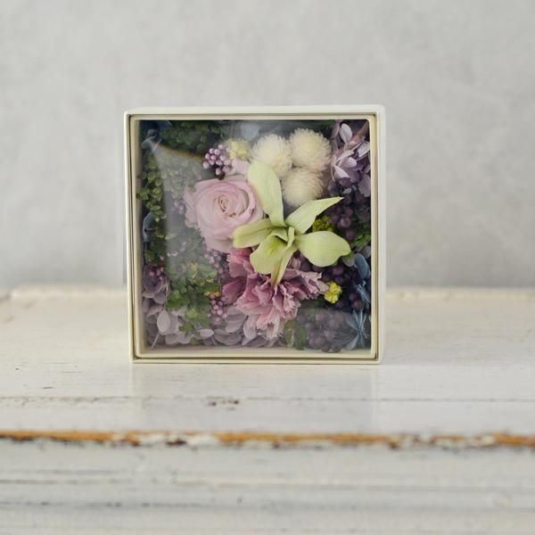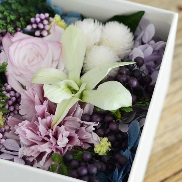■花材:デンファレ・ローズ・カーネーション・千日紅・アジサイ3種・ペッパーベリー・ライスフラワー・アイビー・アジアンタム(プリザーブドフラワー)